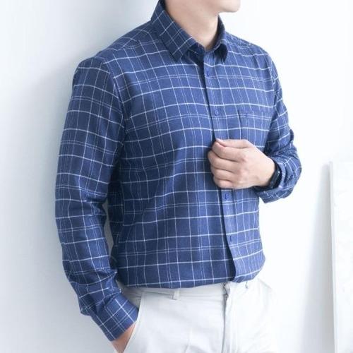 [엄지척]남자 남성 버튼다운 네이비체크 남색 기모 체크셔츠_20485251_667501