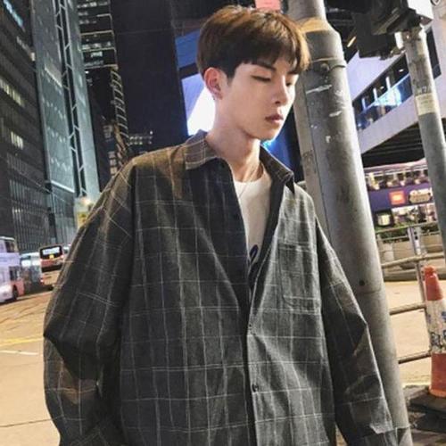 [셀러허브_여성트랜드패션]Rly 남자 캐주얼 오버핏 체크셔츠 남방 학생 데일리