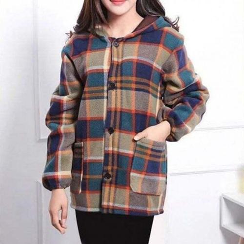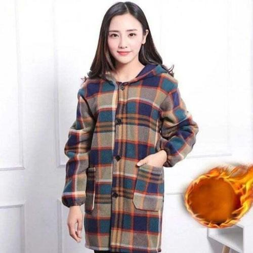 체크 여성 후드 코트 벨벳 여성 플리스 코트 간절기 하프 WFLPPI1