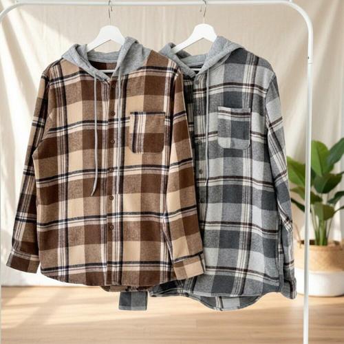 [옷자락]남녀공용 데일리 체크 기모 후드 셔츠