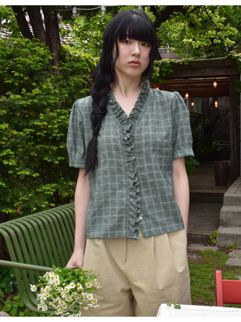 [매긴]단 배색 깅엄 체크 울 블라우스_PBMF5W1BL5030