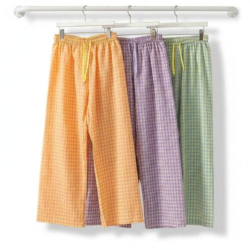 [미라클세븐]여성 여름 홈웨어 세트 배색 체크 와이드 팬츠