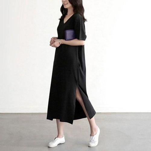 체형 커버 디테일내추럴핏 시그니처 우먼 V넥 롱드레스