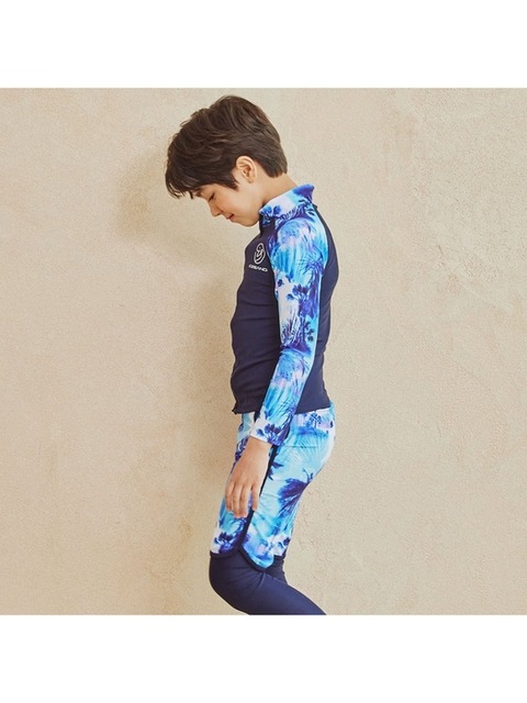 [아이스샌드] 아이스샌드 주니어 아동 래쉬가드+플랩캡이중반바지 초등학생 수영복 세트 UNU-33107