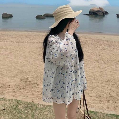 [BZJKNGU9_4A]시스루 플라워 프린팅 블라우스 가디건 여름