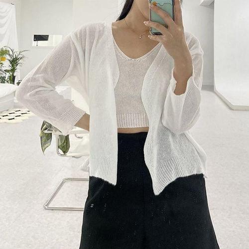 [유아몽드]베이직 시스루 여름 봄 니트 가디건 심플 데일리 미니