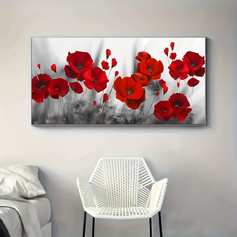 TEMU 1개, 5D DIY 페인팅 키트, 성인용 버전, 생생한 빨간 양귀비 꽃 디자인, 전체 , 27.6x15.7인치, 거실 및 침실 장식용 반짝이는 벽 예술, 캔버스, 플로럴 테마, 라운드 드릴 비트, 프레임 없음
