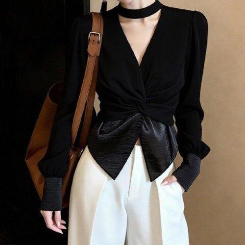 [아리엘스타일]꼬임블라우스 초커넥 슬림블라우스 모듀린블라우스
