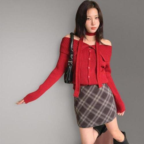 [신상오픈런]여성 오프숄더 니트 긴팔 초커넥 골지 탑