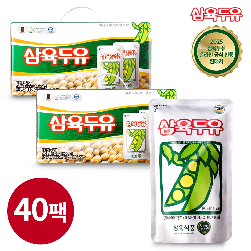 [삼육두유] 검은콩 앤 칼슘 두유 파우치 190ml x 40팩