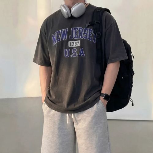 [셀러허브_여성트랜드패션]여름 두꺼운반팔티 남성여름티셔츠 와플 크루넥 반팔티셔츠 남자 남성티셔츠