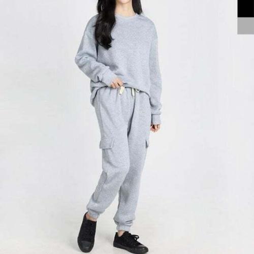 [셀럽하우스]기모면 WKXJ9255 세트 스포츠웨어 뽀얌 트레이닝 카고 맨투맨