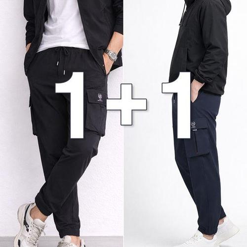 BIKASU 남성 카고바지 밴딩 스판 조거팬츠 빅사이즈 캐주얼 카고팬츠 1+1