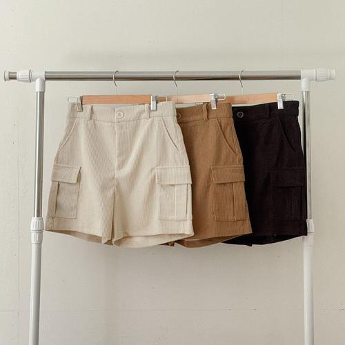 [옷자락] 여자 골덴반바지 카고 러블리 4부 가을 뒷밴딩 반바지