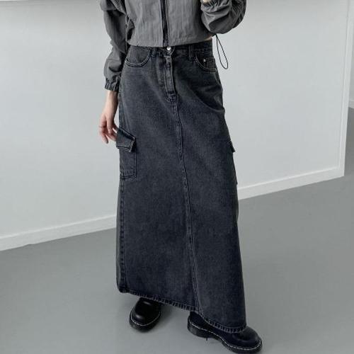 [다잇템][다잇템] 여자 그런지 슬릿 블랙진 카고치마 에이라인 롱스커트_18039497_588872