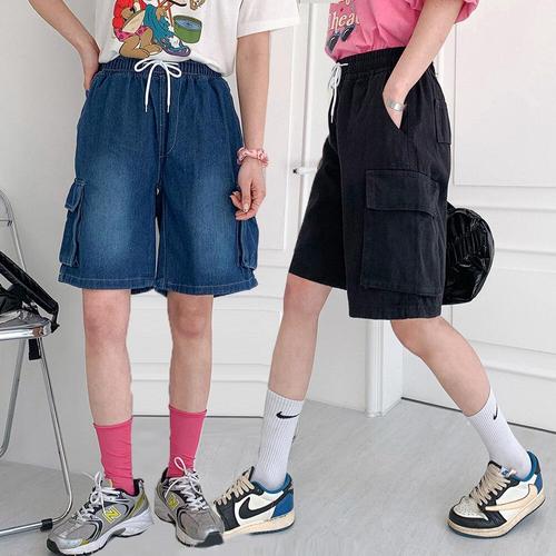 UPPERCUT 주니어 카고 청반바지 초등학생 버뮤다 팬츠 원포켓 데님쇼츠 여름 청바지 6부 반바지 남녀공용