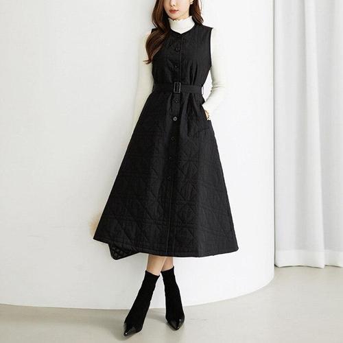 [스타일온미]디엔느 다이아 퀄팅 뷔스티에 패딩 원피스 크롭 자켓 세트