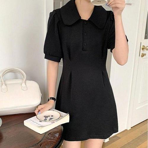 미니원피스 A라인 여성 퍼프소매 허리라인 뒷밴딩 3색 카라