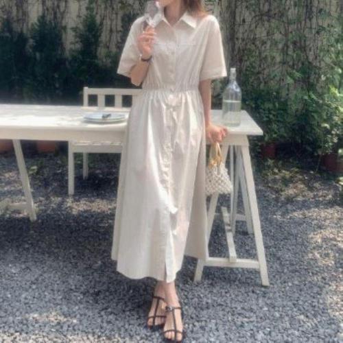[다잇템]여성용 롱 남방 미니멀리즘 허리 카라 원피스