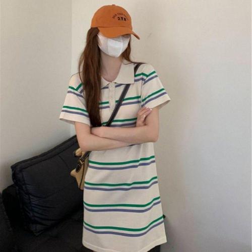 [오너클랜]인기상품 스트라이프 카라 반팔 여성용 미니 원피스 여름 [WFLKZUB_260304]