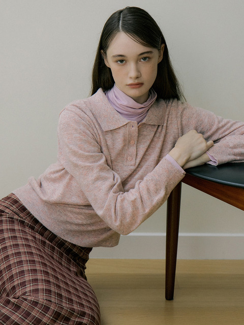 [리올그] 리올그 소프트 버튼 카라 니트 핑크베리