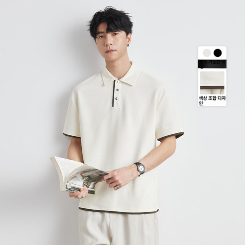 제로투올샵2 / 남성 배색 반팔 셔츠 카라티 블랙