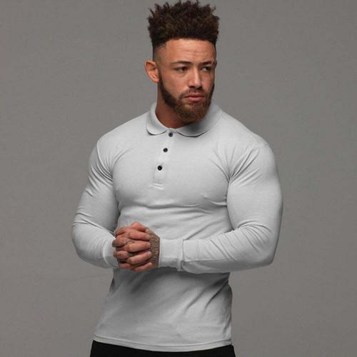 머슬핏 카라티 남성 슬림핏 단추 긴팔 티셔츠 2색