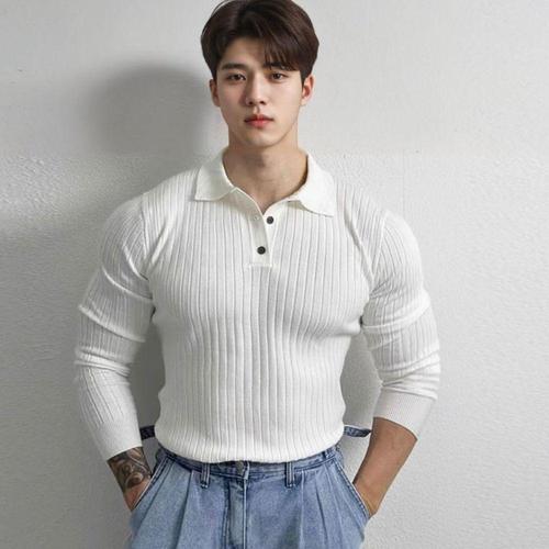 [엄지척]머슬핏 카라티 슬림핏 티셔츠 남성 긴팔 2색 단추_20485220_667501
