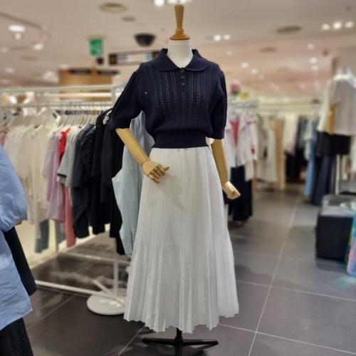 Latium HC06 깔끔한 꽈배기 카라니트 플레어 플리츠 세미 정장 롱원피스 T