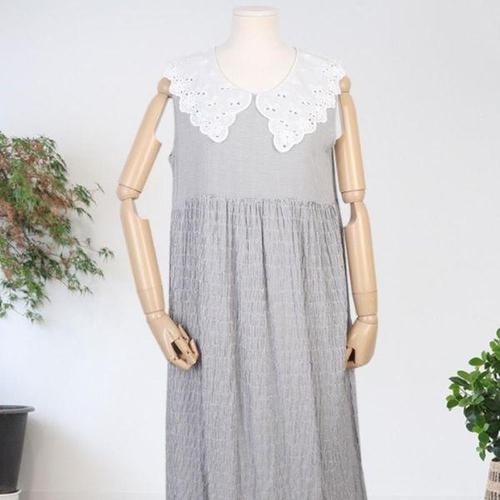옷자락 / 여성 펀칭 레이스 카라넥 민소매 루즈핏 롱 원피스