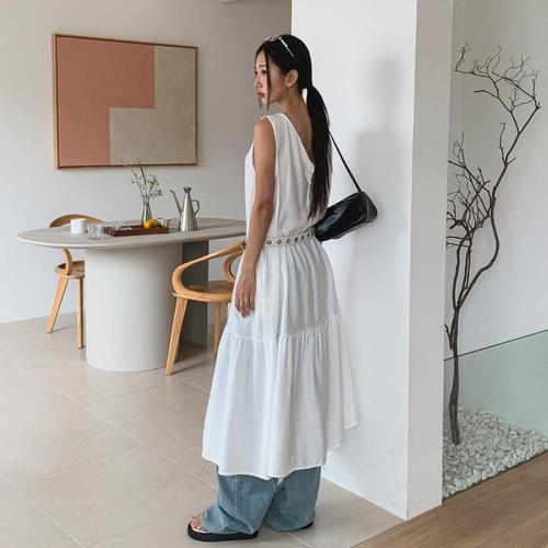 [옷자락]여자 린넨 무지컬러 핀턱 셔링 민소매 롱 원피스