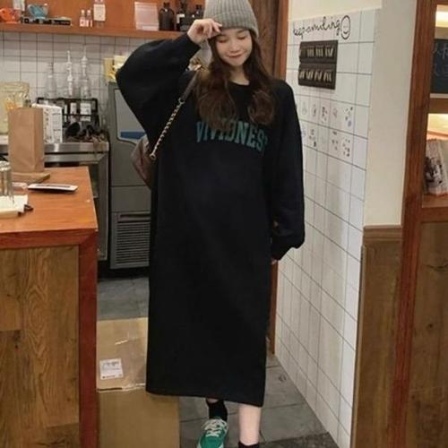 [엄지척]기모 여성 라운드넥 안감 캐주얼 긴팔 롱 원피스 여자_19803433_667501