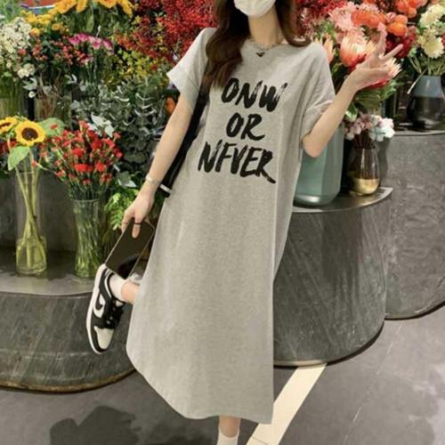 여성 데일리 여름 반팔 레터링 원피스 롱 캐주얼 (WFH9QKS)