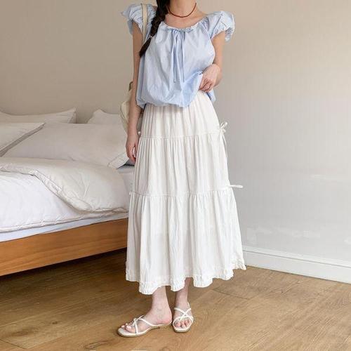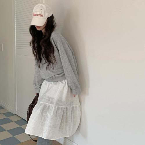 [옷자락] 여자 데일리 밴딩 캉캉 화이트 롱스커트