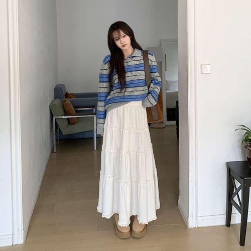 [신상오픈런]여자 골덴치마 밴딩 캉캉 가을 겨울 데이트룩 롱스커트