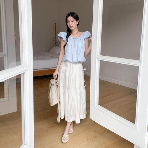 [옷자락] 여자 봄 여름 시원한 캉캉 플레어 롱스커트