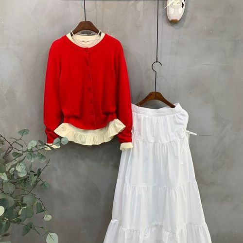 [옷자락]여자 봄데이트룩 프릴 캉캉 빅사이즈 셔링 롱스커트