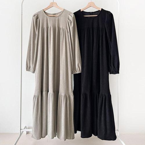 [옷자락]여성 가을 빅사이즈 셔링 캉캉 퍼프 골덴 롱드레스