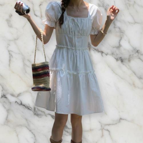 [옷자락]여자 러블리 데이트룩 여름 퍼프소매 캉캉 미니 원피스