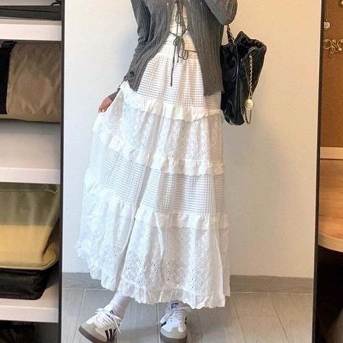 데일리앤 사빈 아일렛 펀칭 레이스 프릴 캉캉 롱스커트 여름 치마