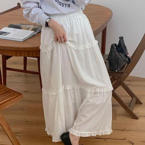 [샵앤][샵앤] 국산 여성 허리밴딩 4단 캉캉 롱스커트 STJ-WSK-46