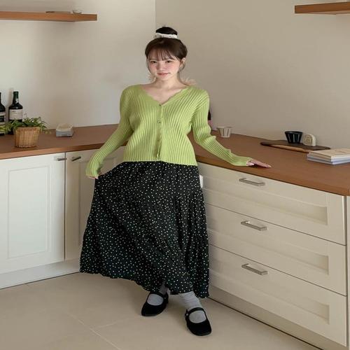 [엘루이즈][엘루이즈] 로하슈 올밴딩 도트 플리츠 2단 캉캉 롱스커트(2color)