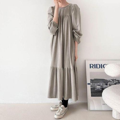 [보리맘]겨울 골덴 캉캉 셔링 롱 원피스 여성 빅사이즈
