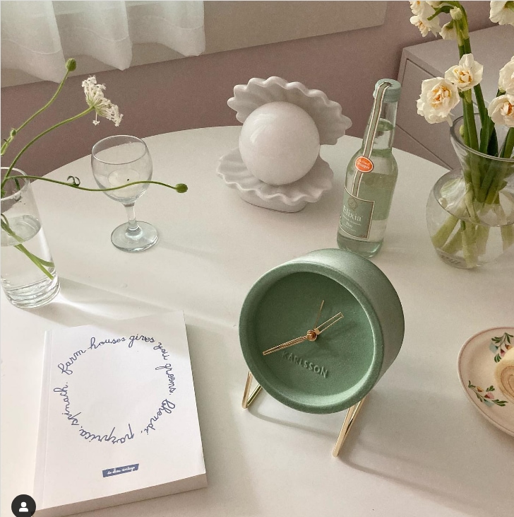 [해외] 감성 모던 크림 무소음 탁상시계 거실 사무실 인테리어 시계 집들이 선물