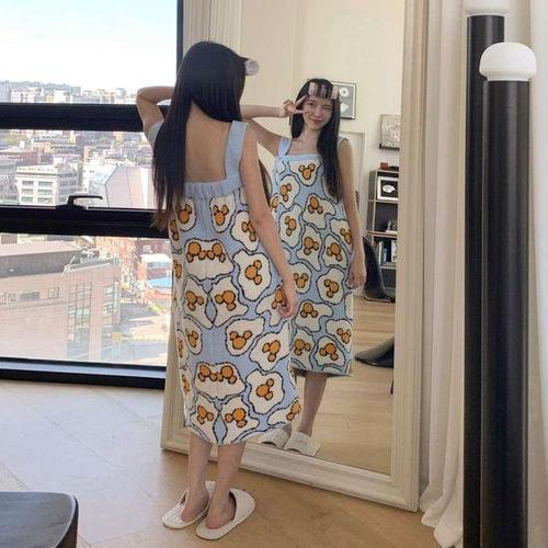 [옷자락]여성 여름 캐릭터 나시 샤워 가운 원피스