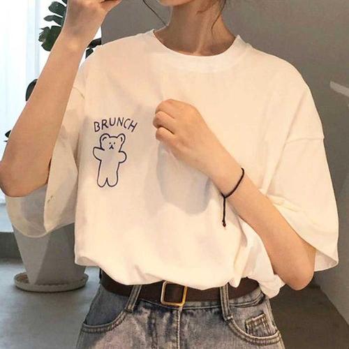 여자 캐릭터 박시 반팔티 여름 데일리룩 티셔츠