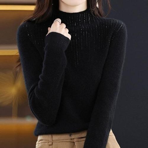 [엄지척]여성 긴팔 간절기 가을 캐시미어 여자 니트 티 블랙_19803911_667501