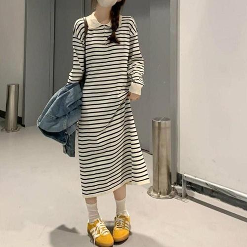 [다잇템][다잇템] 여자 콘트라스트 캐쥬얼 소매쉬폰 스웨터 비침 원피스_15525974_588872