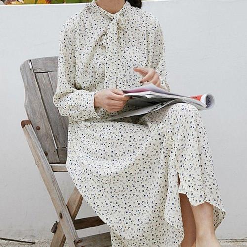 [오너클랜]인기상품 여자 리본 장식 롱 원피스 간절기 플라워 캐주얼 드레스 [WFLIO3Z_260301]