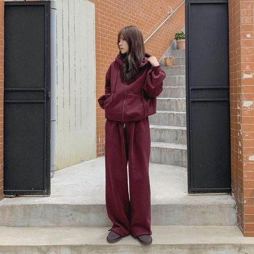 [옷자락] 여성 캐주얼 포근 무지컬러 후드 집업 팬츠 세트